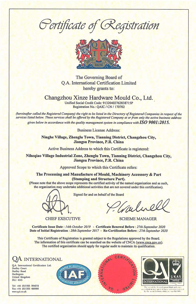 CHANGZHOU XINZE HARDWARE MOULD CO., LTD